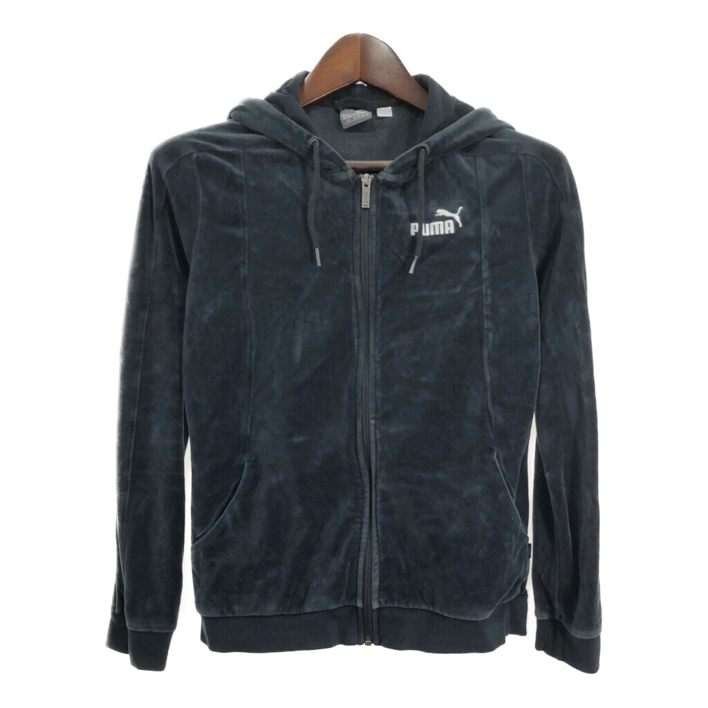 - PUMA プーマ ベロアパーカー スポーツ ワンポイントロゴ ブラック (レディース L) 中古 古着 S6924