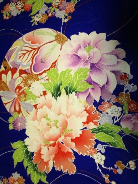 - F-42★紫地*牡丹*菊*ダリア*梅*紅葉*正絹*古布はぎれ★吊るし雛/市松人形/一閑張り/文化人形