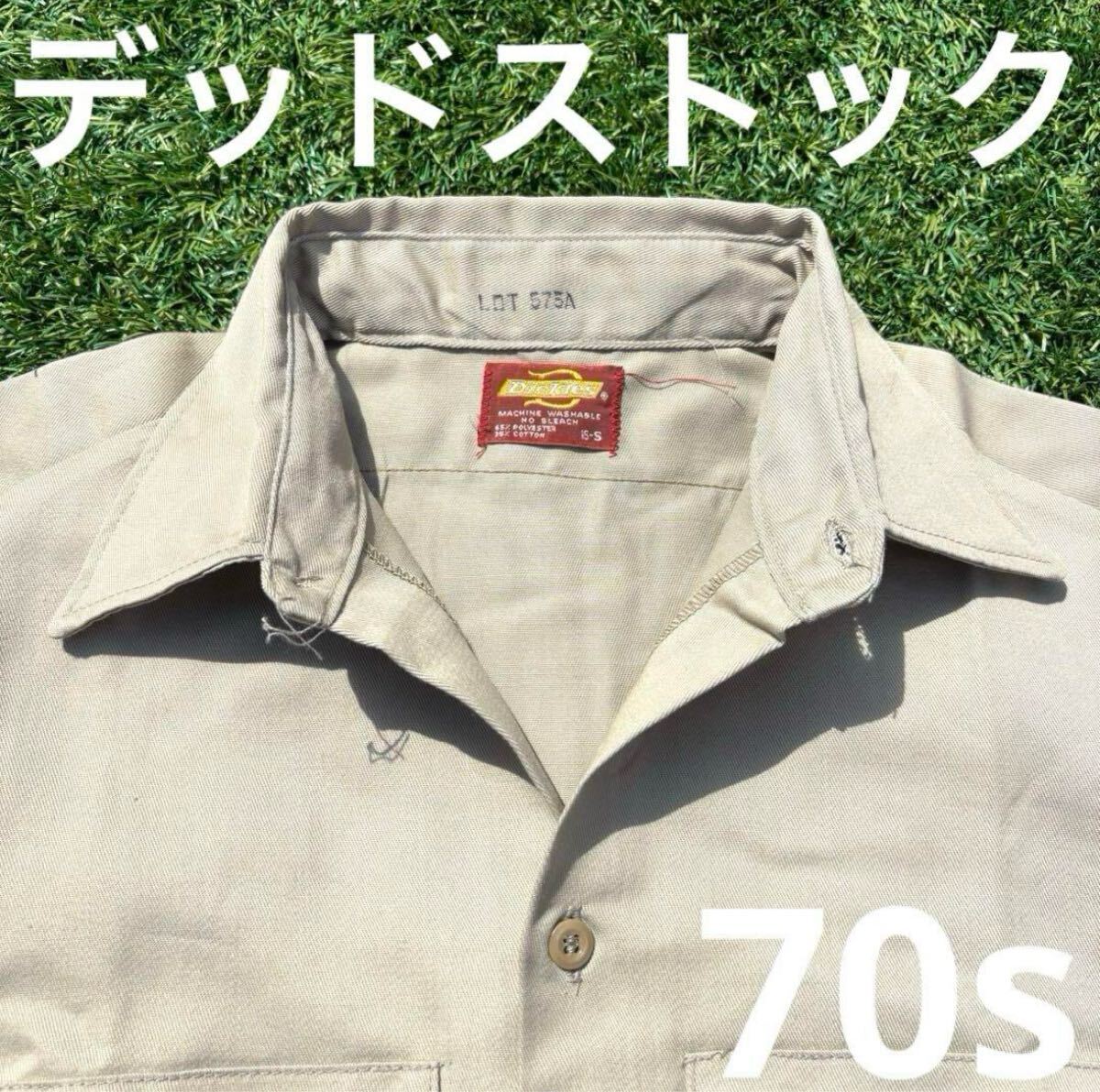 > 希少 デッド 未洗い ミント 70s USA製 Dickies ディッキーズ ワーク シャツ オールド ビンテージ アメリカ アメカジ 古着 男子 メンズ