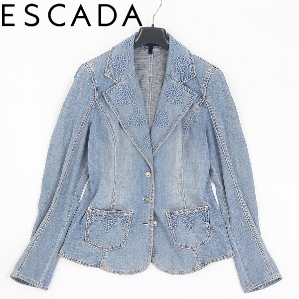 - 【HA299】美品◆ESCADA エスカーダ ストレッチ デニム 3釦 ジャケット サックス 36