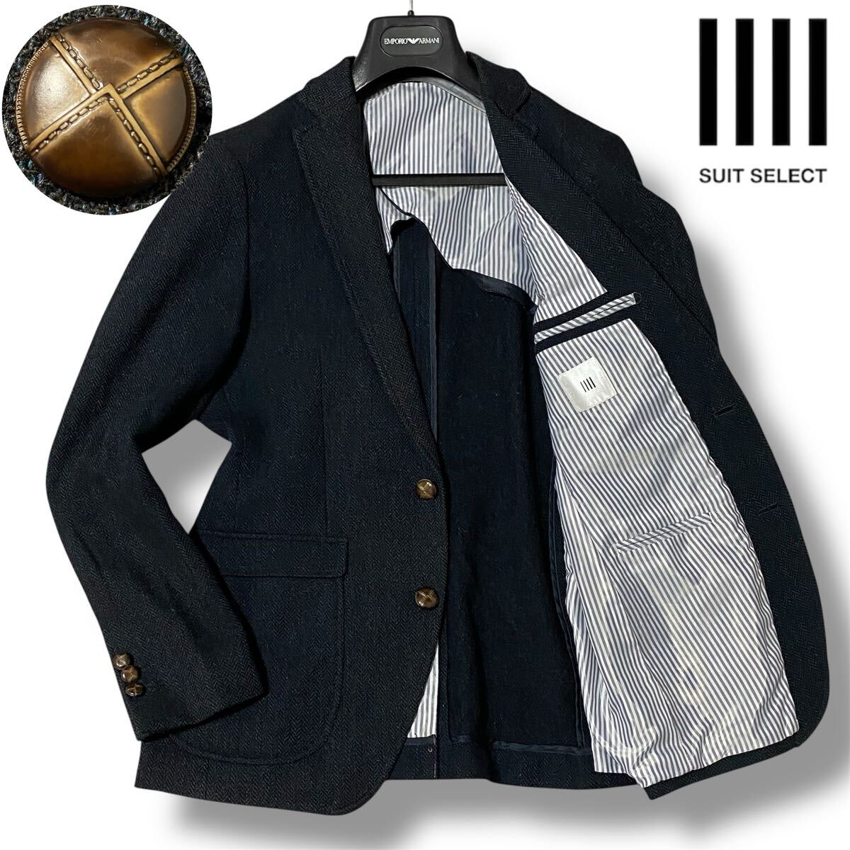 - 美品◎SUIT SELECT「洒脱な逸品」ヘリンボーン柄×ツイード素材×くるみボタン アンコン/背抜き 上品なダークネイビー/濃紺 ジャケット M