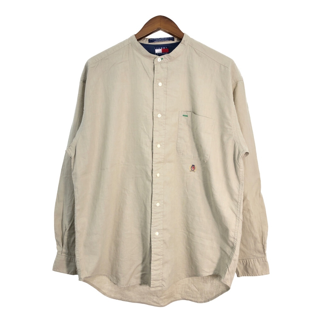 - 90年代 TOMMY HILFIGER トミーヒルフィガー ノーカラー 長袖シャツ ベージュ (メンズ L) 中古 古着 R7452