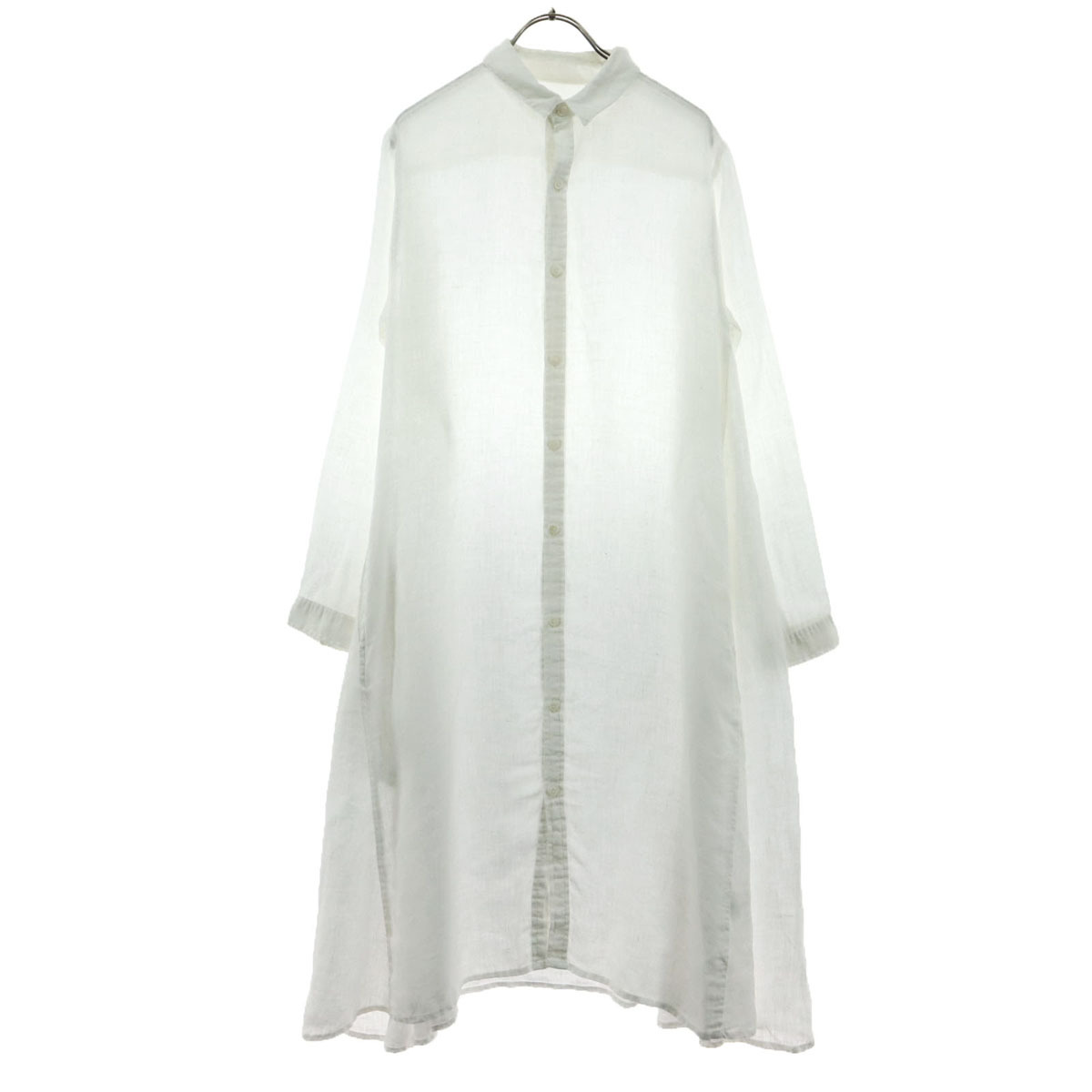 美品 ichi イチ リネン 長袖 シャツワンピース アイボリー レディース