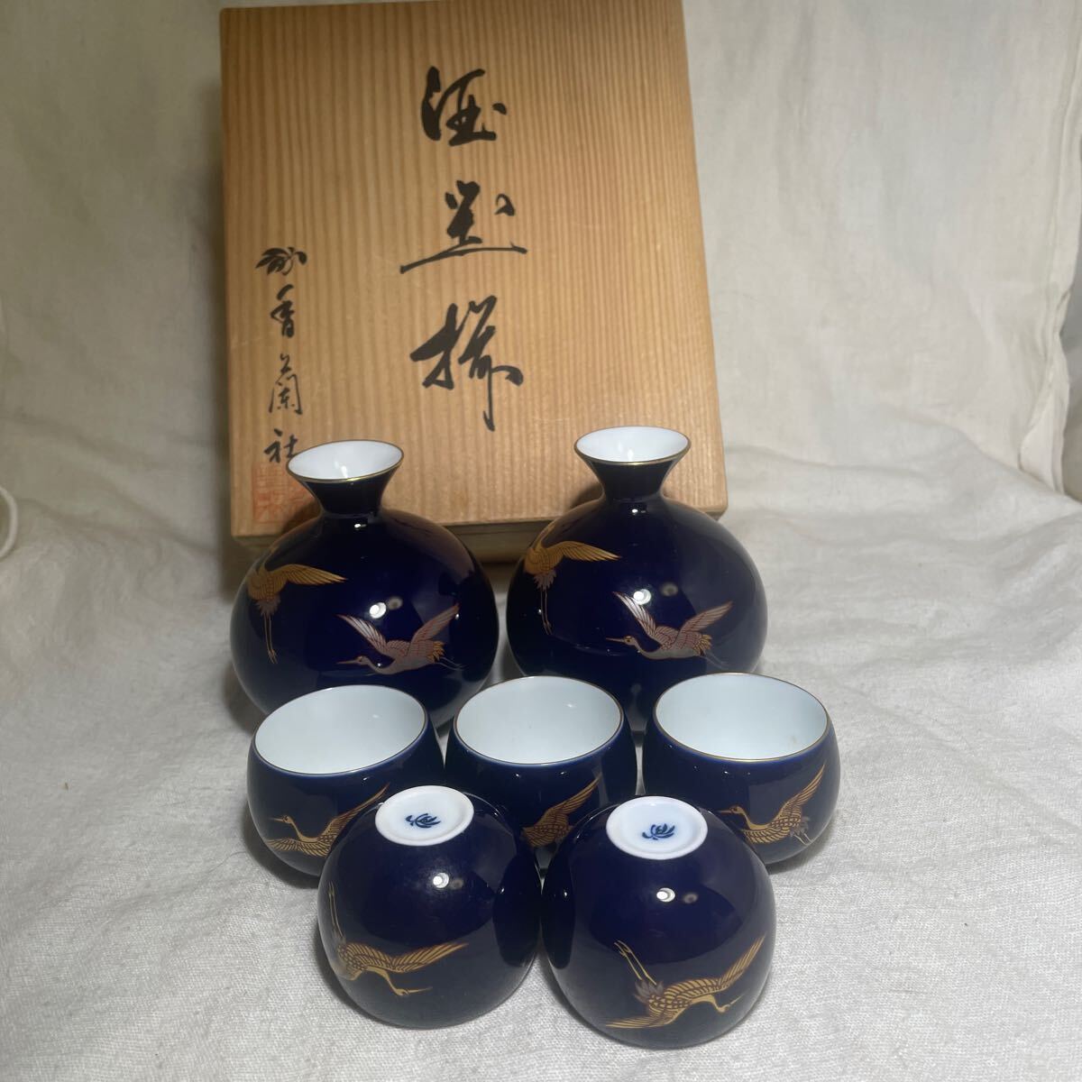 - ◯有田焼 香蘭社 徳利 お猪口 酒器セット◯霧箱入り 七点 未使用品 Xー179