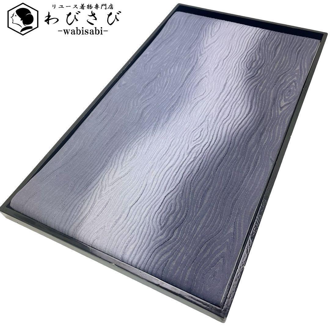 - 袋帯 グラデーション 暈し 木目模様 銀通し 藍錆色 ガード加工 O-4220