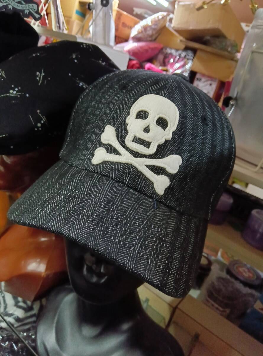 - グッドロッキンベースボールキャップスカル&クロスボーン新品検索GOOD ROCKIN'ヘリンボーンデニムロカビリー50Sガイコツ髑髏昭和レトロ