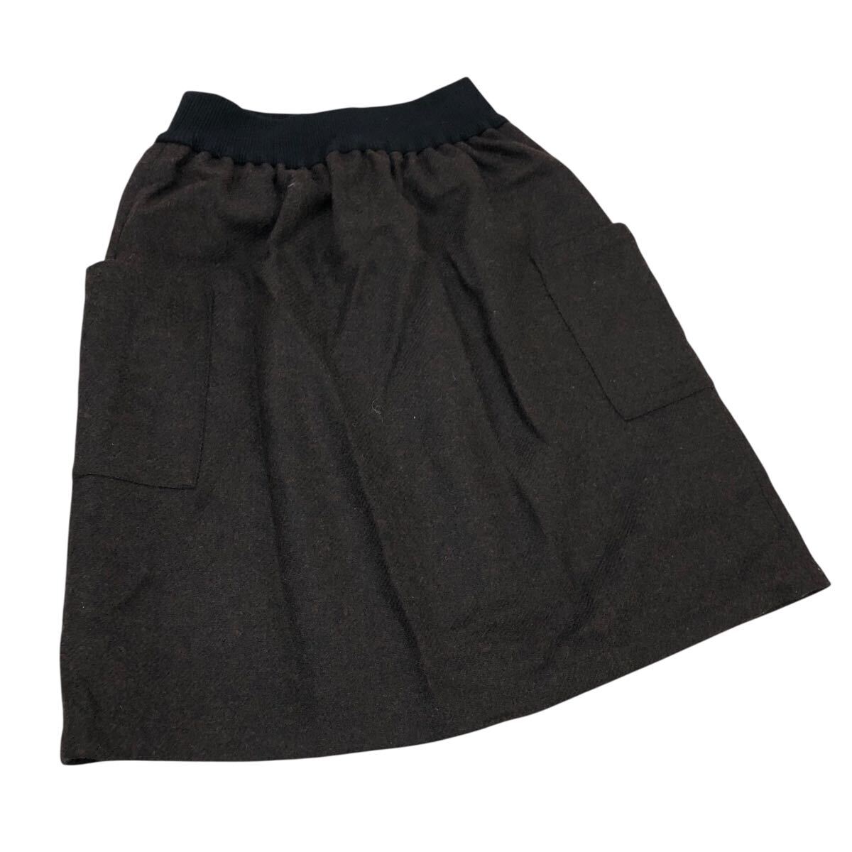> 9Nm324-31 未使用品 agnes b. アニエスベー 定価30000円 サイドポケット ウール ひざ丈スカート スカート ボトムス ブラウン レディース 3