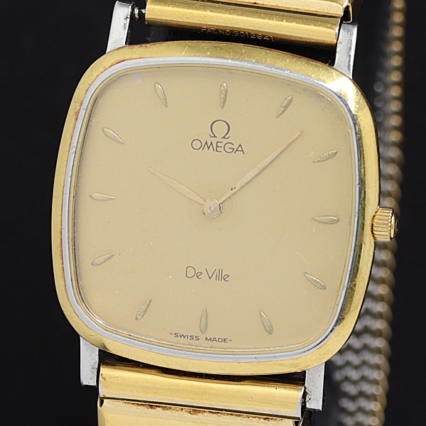 - 1円 オメガ デヴィル 54606861 QZ ゴールド文字盤 メンズ腕時計 0045100 9ERT SMZ