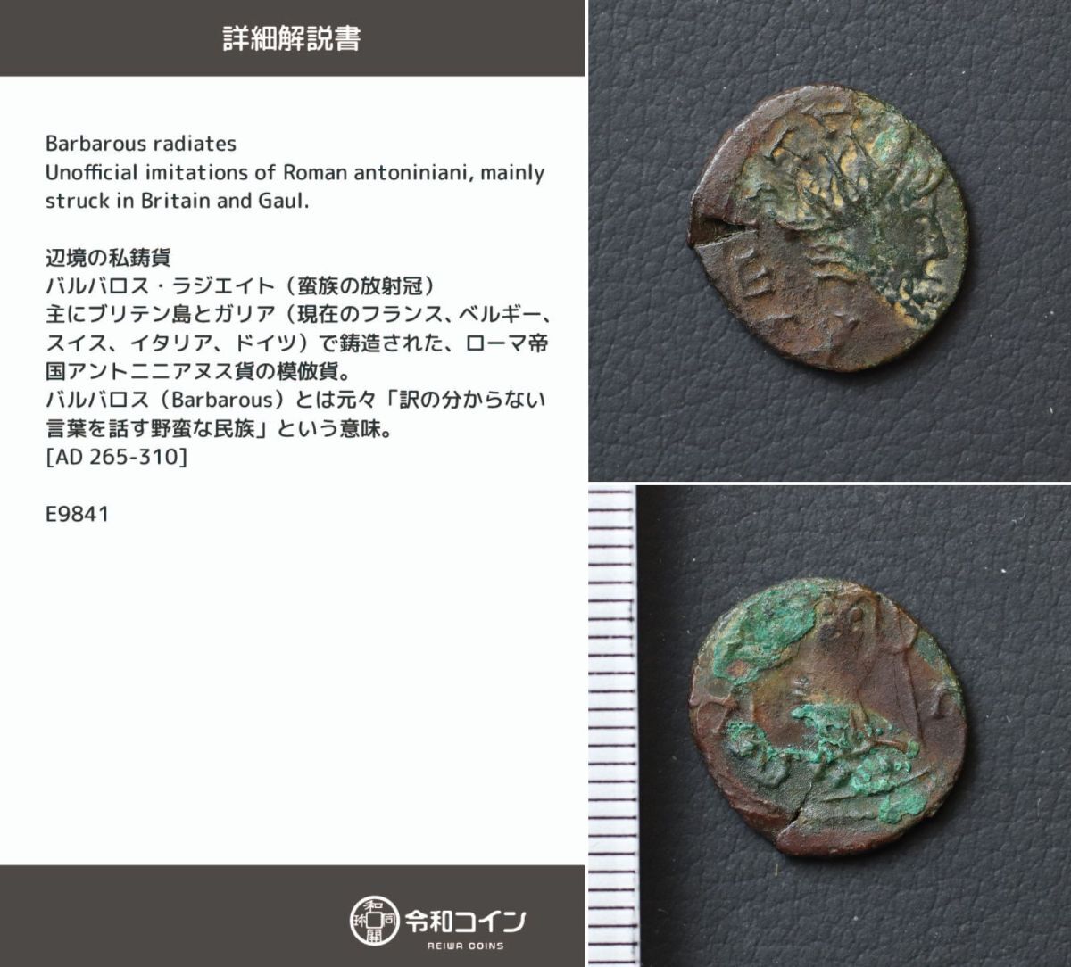 > *[令]辺境の私鋳貨「バルバロス・ラジエイト」古代ローマコインの模倣貨【詳細説明カード付】古代ギリシャ[E9841]7r0