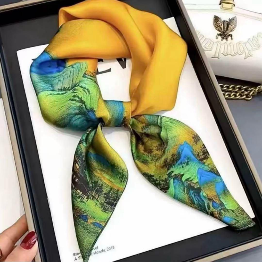 - ハンカチ シルク イエロー レトロ スカーフ 千里鉱山 おしゃれ