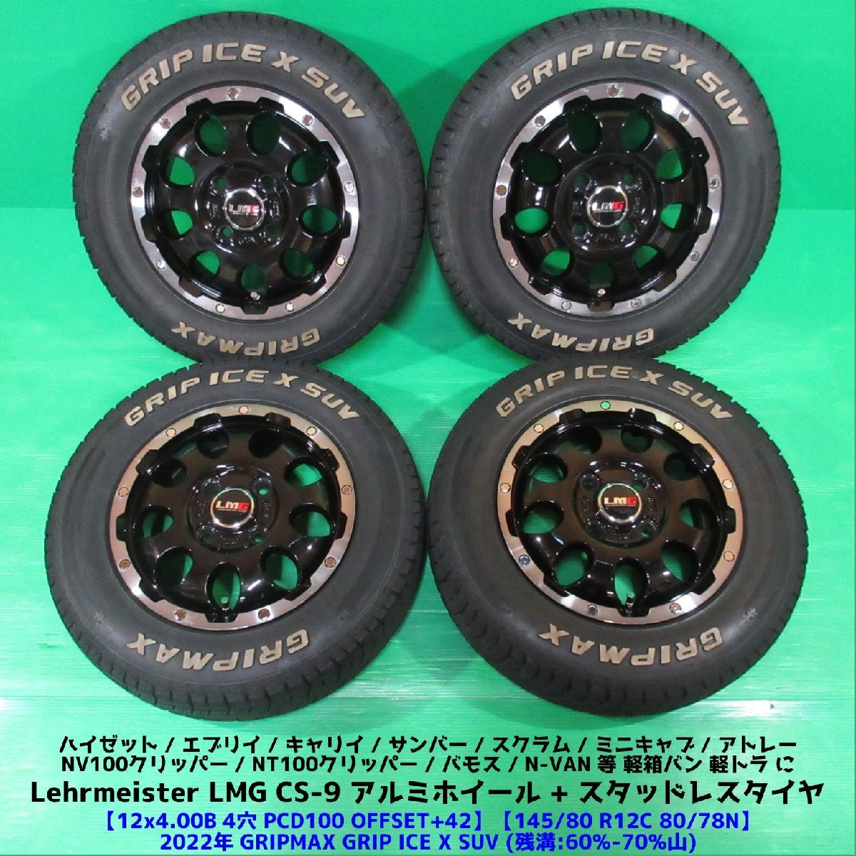 - アトレー 145/80R12C 80/78N 2022年スタッドレス 60-70%山 GRIPMAX GRIP ICE X SUV 4本 4穴PCD100 +42 ハイゼット エブリイ N-VAN 中古新潟