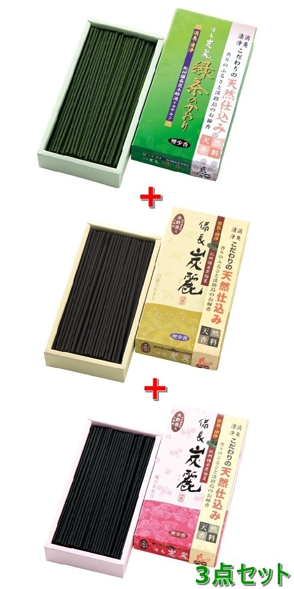 - 線香セット 贈答用 ギフト 備長炭麗 緑茶のかおり + 備長炭麗 白檀のかおり + 備長炭麗 梅のかおり お供え お彼岸 お線香 供物 お盆