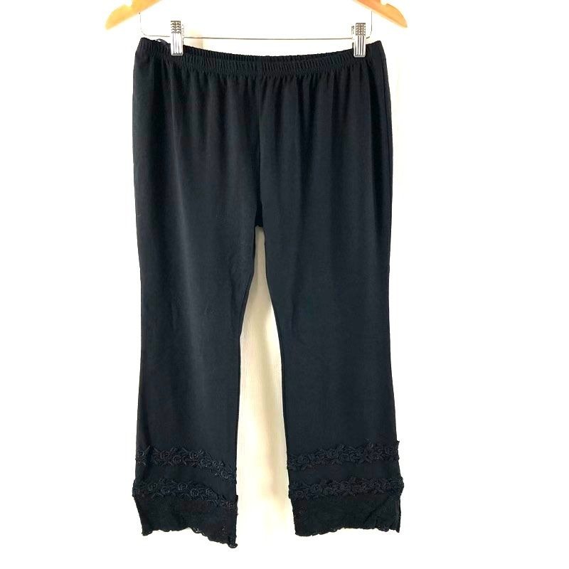 - パンツ レギンスパンツ 裾レース 花刺ライン ウエストゴム ブラック Lサイズ 2025082800018