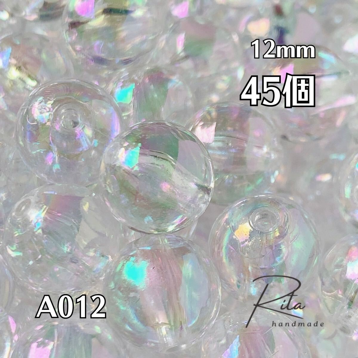 - 【45個】クリア アクリルクリアビーズ オーロラ加工 12mm 両穴 ハンドメイド アクセサリーパーツ