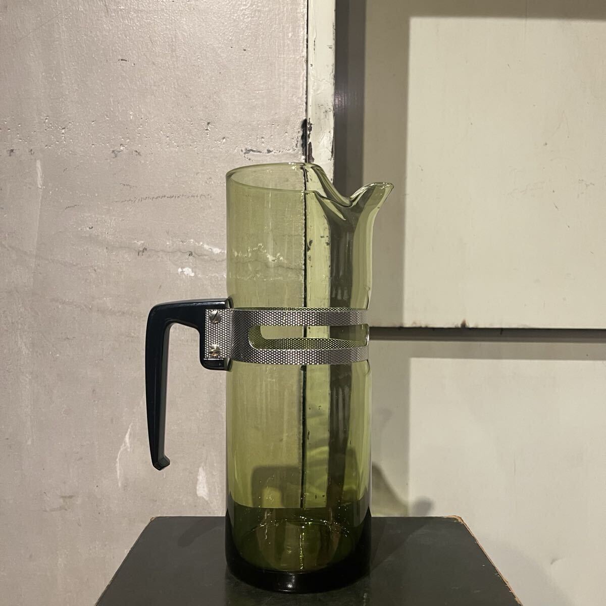 > M.TAKA ガラス ピッチャー フラワーベース 花器 花瓶 水差し オブジェ インテリア レトロ 昭和レトロ グリーン 緑 アンバーグラス