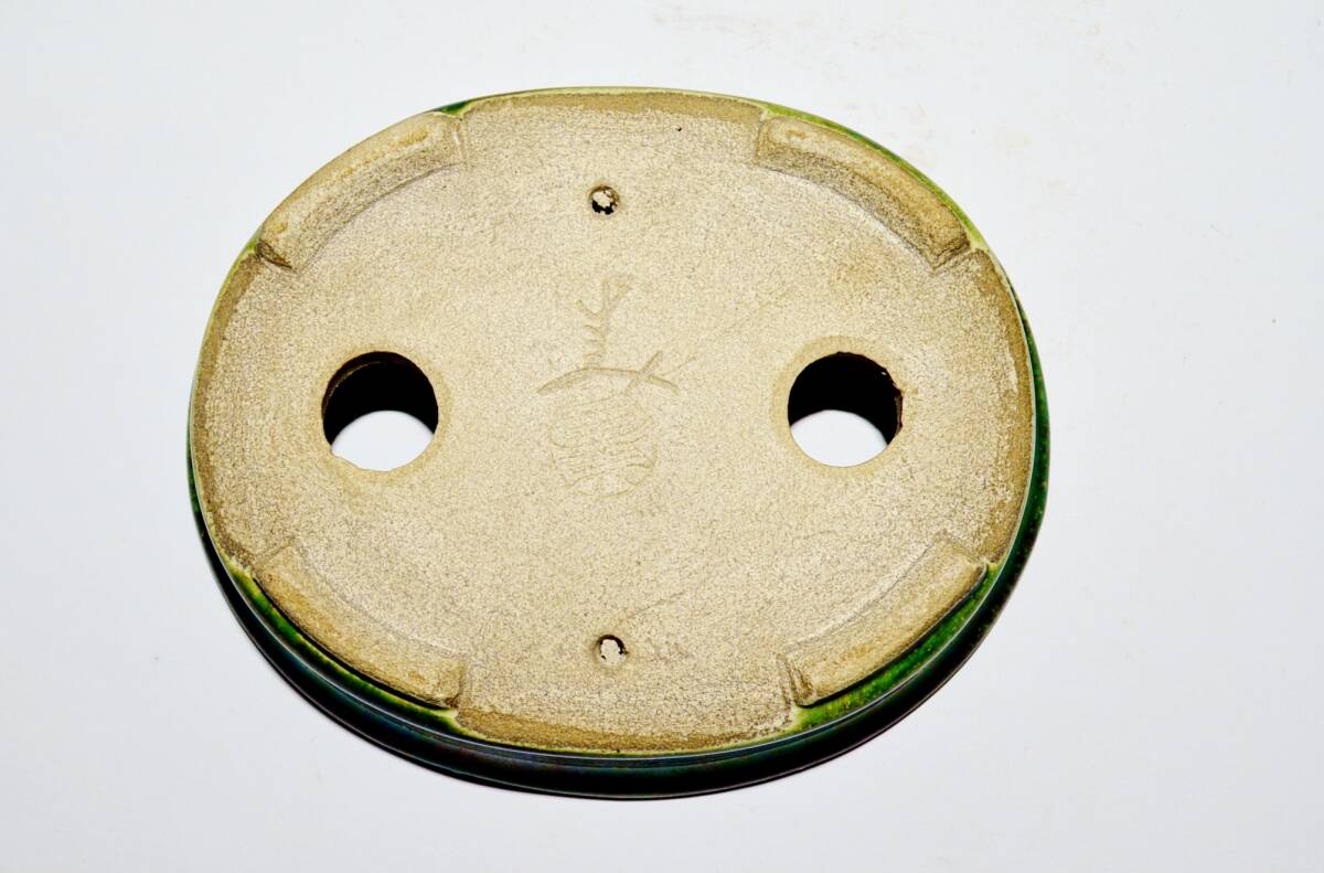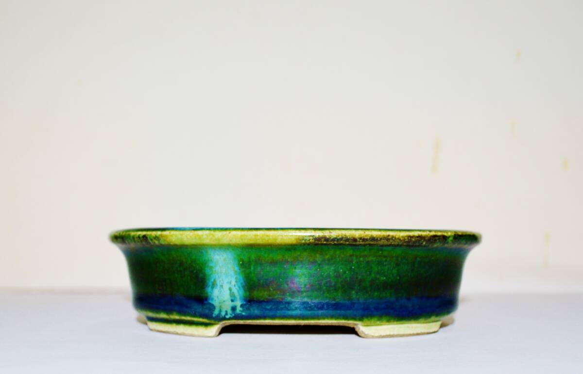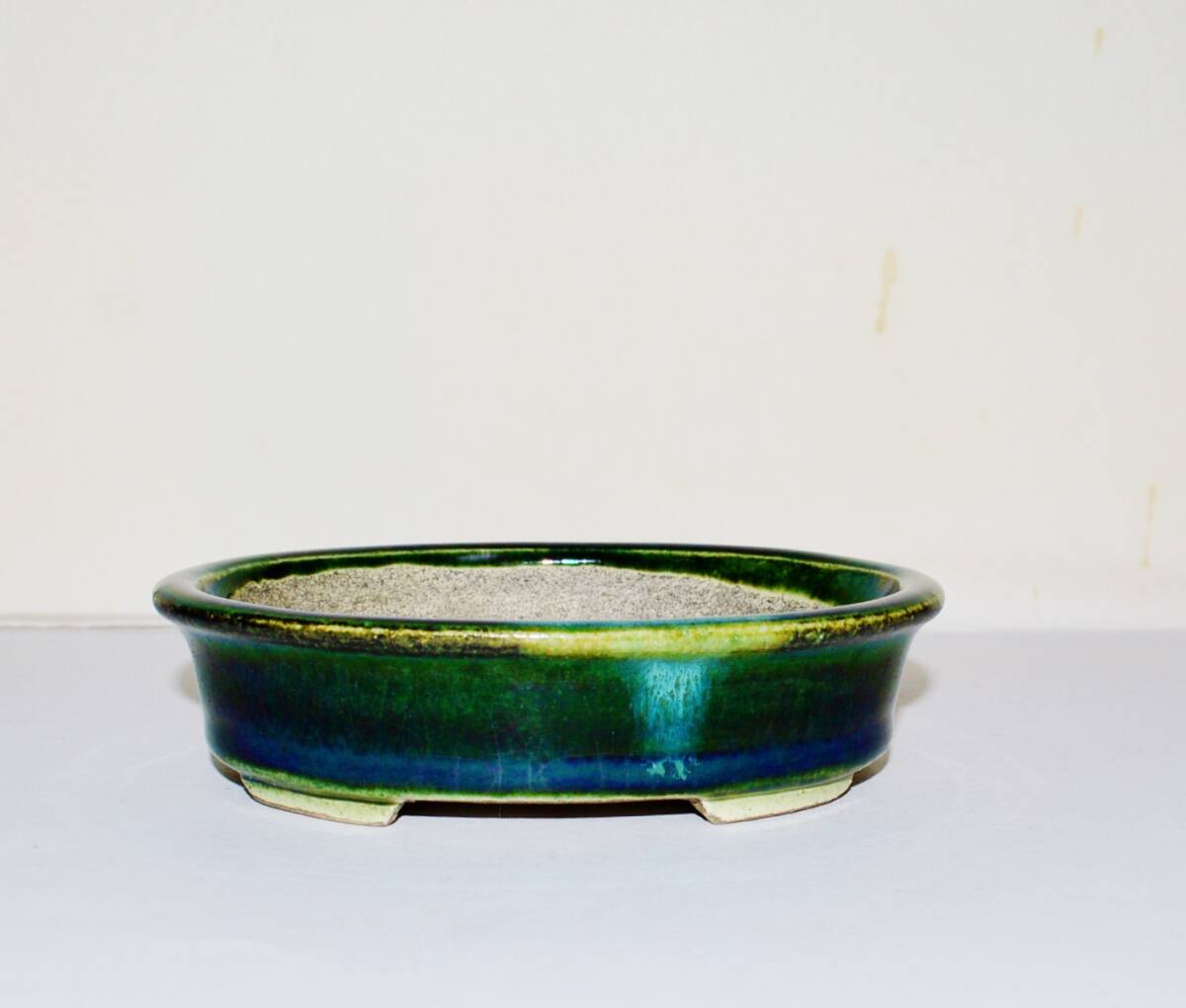 - 人気品薄和鉢作家 「寺畑さとみ(加藤里美)」 寺畑陶園 窯変織部釉に白釉 外縁小判形の鉢