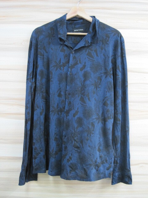 > 4717 EMPORIO ARMANI エンポリオアルマーニ メンズ 長袖シャツ ネイビー&ブラック ボタニカル柄 XLサイズ