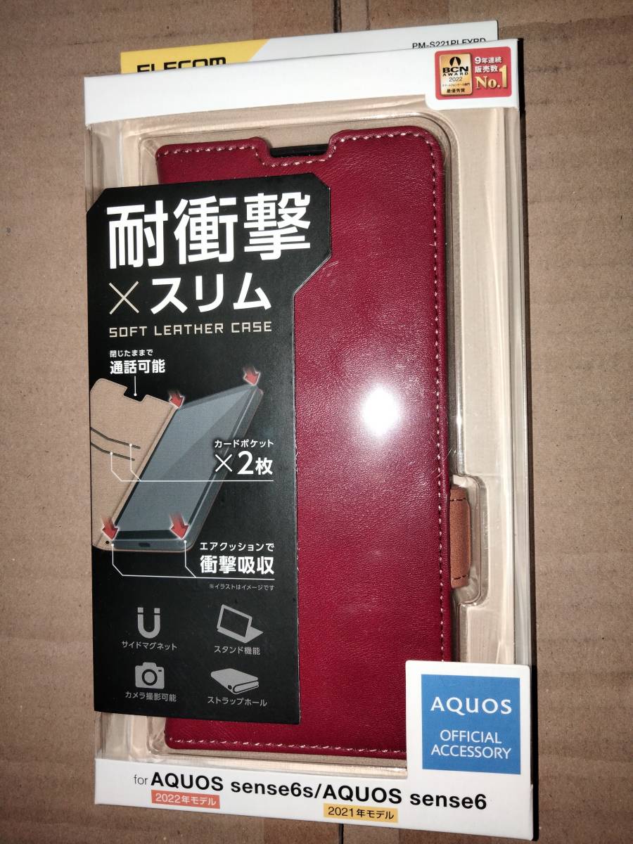 > ELECOM AQUOS sense6 SH-54B SHG05 SH-RM19 SH-M19 sense6s SHG07 ソフトレザーケース 磁石付 耐衝撃 ステッチ レッド 便利な7つの機能搭載