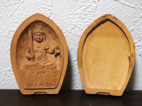 - 木彫 白檀 香合仏 不動明王像 仏像 懐中仏 n929