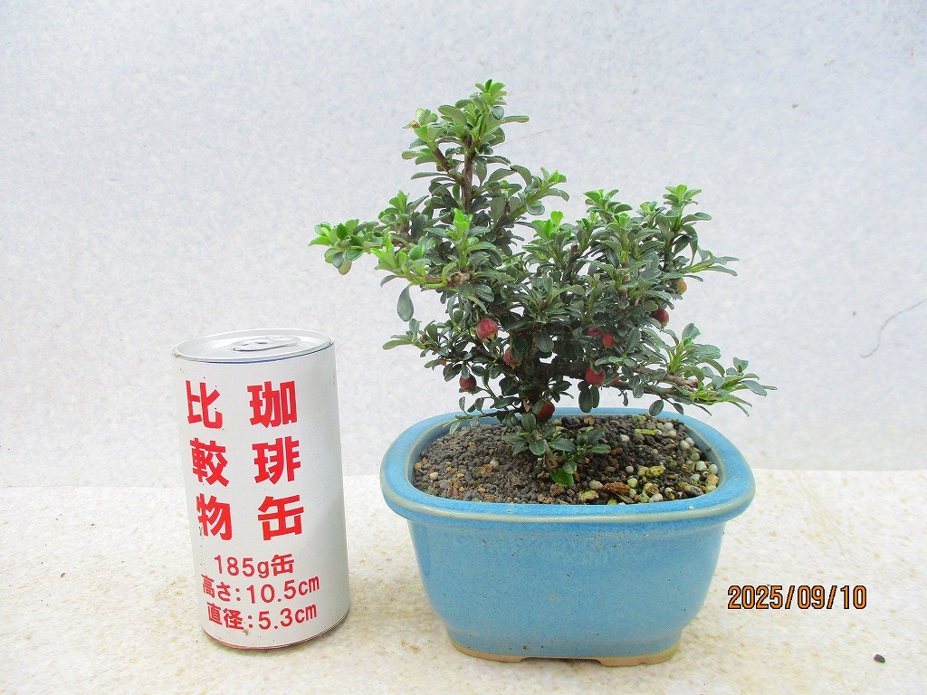 - [緑の市場] ミニ盆栽 白紫檀*実付(9826均釉正方鉢)全高:20㎝【小型送料】*同梱包対応「まとめて取引」厳守*60サイズ送料明記