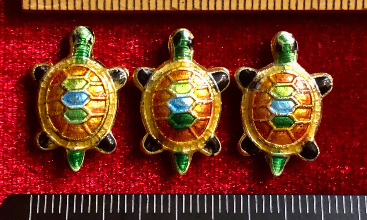 > ¶!¶ 有線七宝焼ワールド - 3個の亀ちゃんペンダントで1単位 ¶!¶ 金線に金色と橙色釉の亀 手作り 手芸 工芸 インテリア ペンダント
