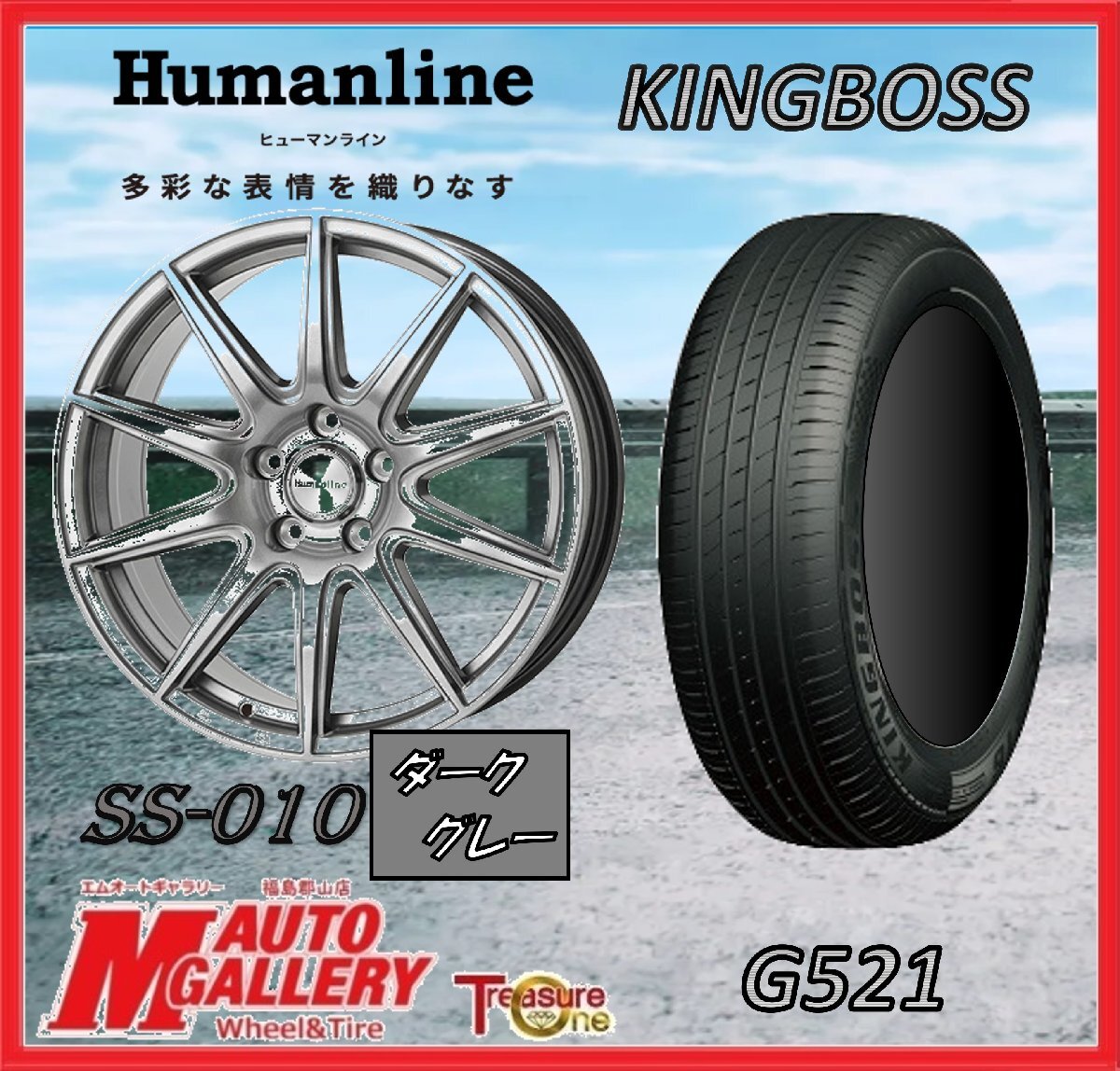 > 郡山店★サマータイヤホイールSET★ヒューマンラインSS-010 15インチ 6.0J 5H114+43&キングボス G521 195/65R15 91H★セレナなど