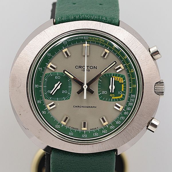 > デッドストック級 稼働 美品 クロトン 箱付 AT/自動巻 クロノグラフ ヴィンテージ シルバー文字盤 メンズ腕時計 OGH 9581ABC5501000