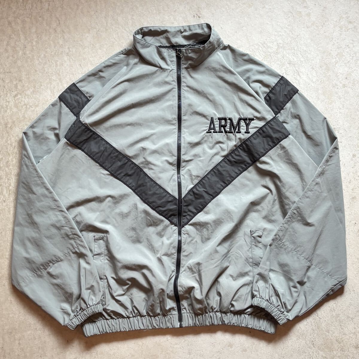 > 【US.ARMY】アメリカ軍 IPFU トレーニングジャケット ナイロン メンズ XL-L相当 Gray ロゴ 刺繍 ミリタリー リフレクター ブルゾン 正規 ⑥