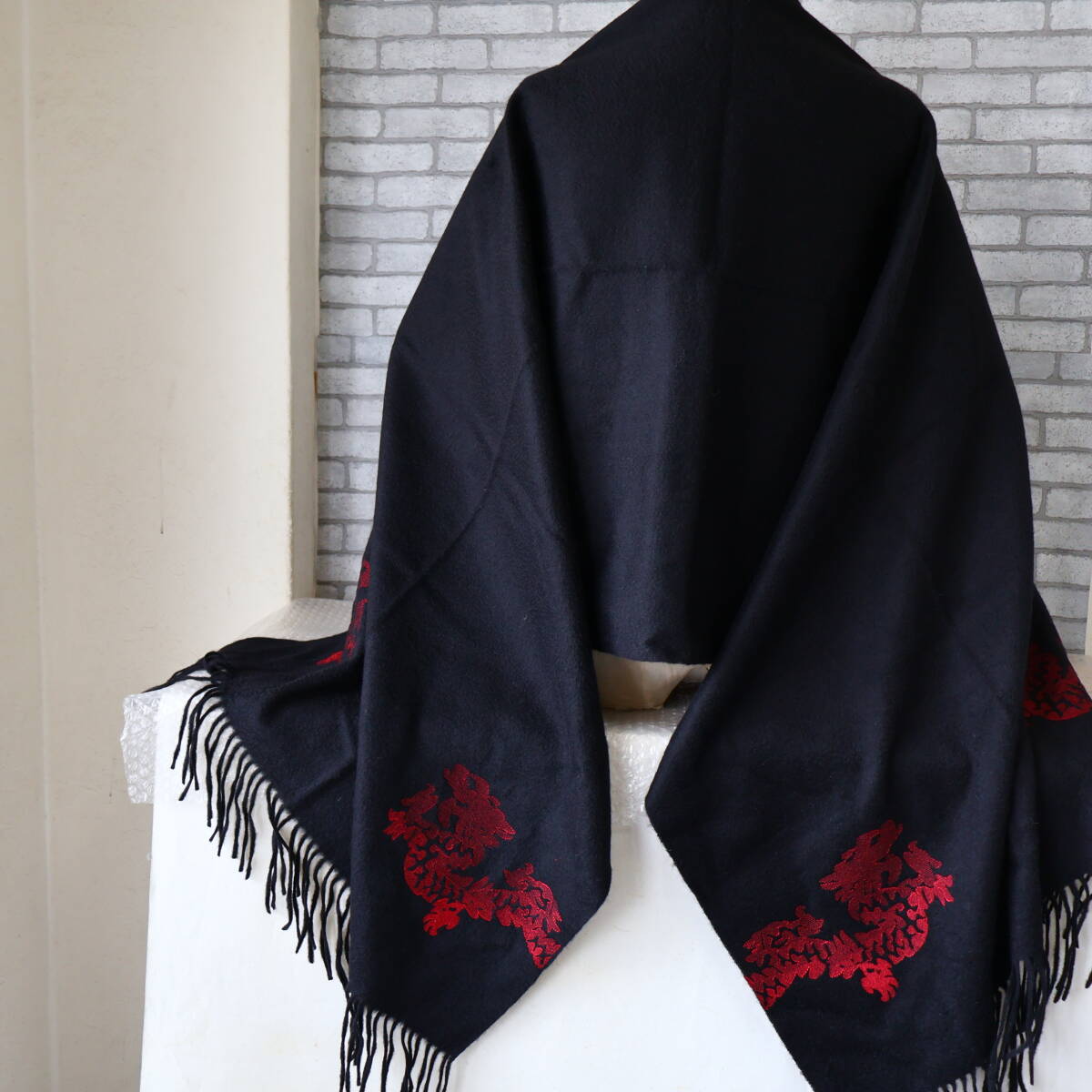 > ◆未使用品*VIVIENNE TAM/ヴィヴィアンタム*ドラゴン*刺繍*羊毛*カシミア*大判*ストール*マフラー*黒*タグ付◆