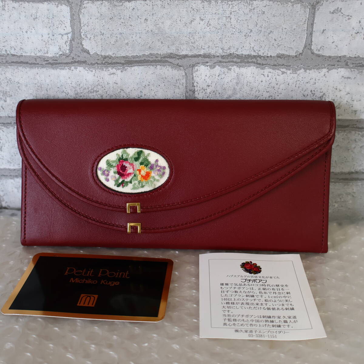 - *美品*Petit Point/MichikoKuge/久家道子*ダブルフラップ*プチポアンコンビ*レザー*長財布*財布*ウォレット*ワイン*