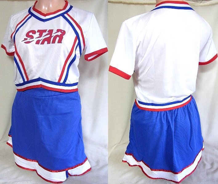 - ★☆未使用コスプレ【チアガール風 白Tシャツ&ブルースカート】☆★