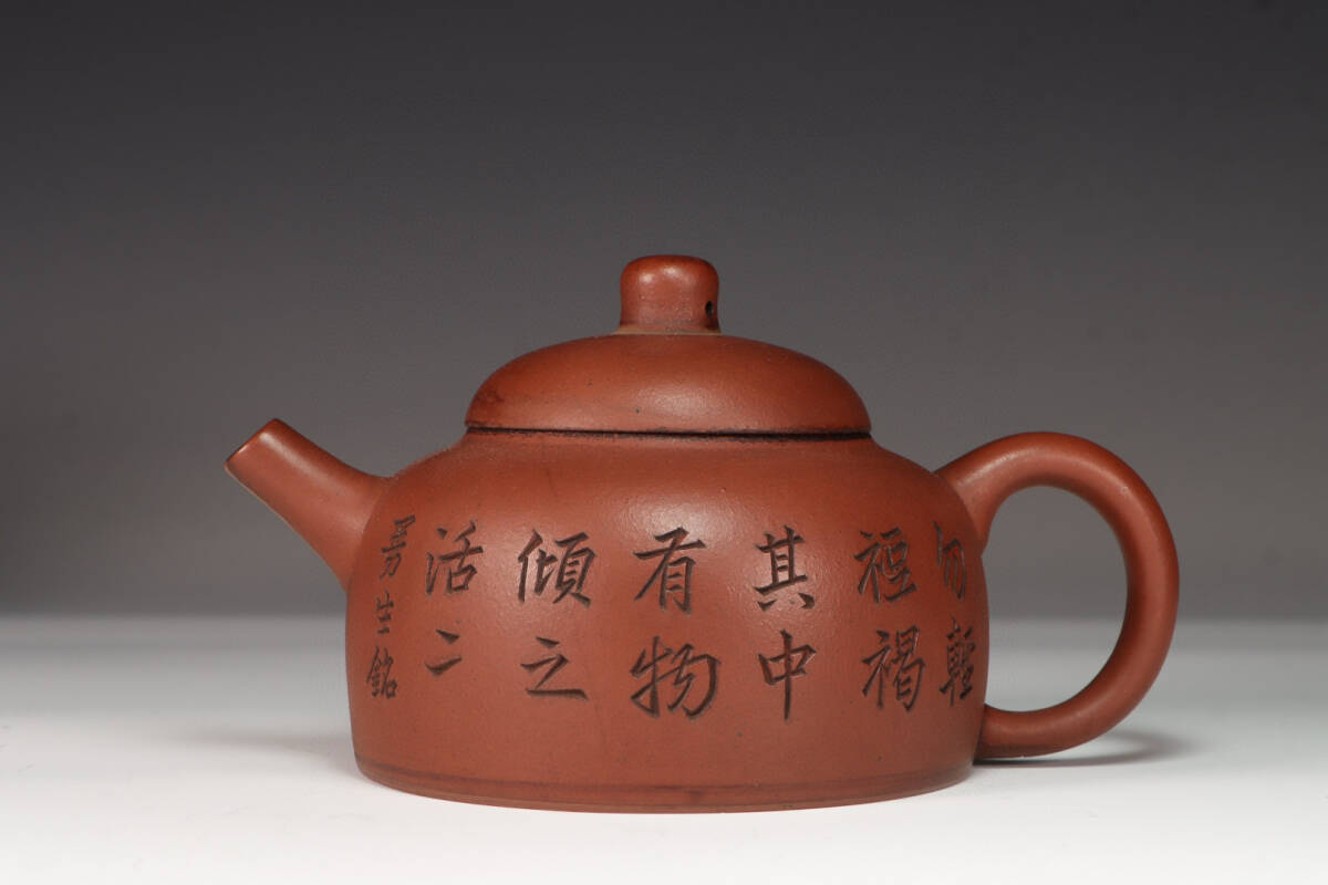 - 『古』【底款・曼生銘】重量226g 朱泥 段泥 煎茶道具 急須 単孔口 唐物 孟臣 紫砂壺 紫砂壷 茶壷 茶壷 明代/清代