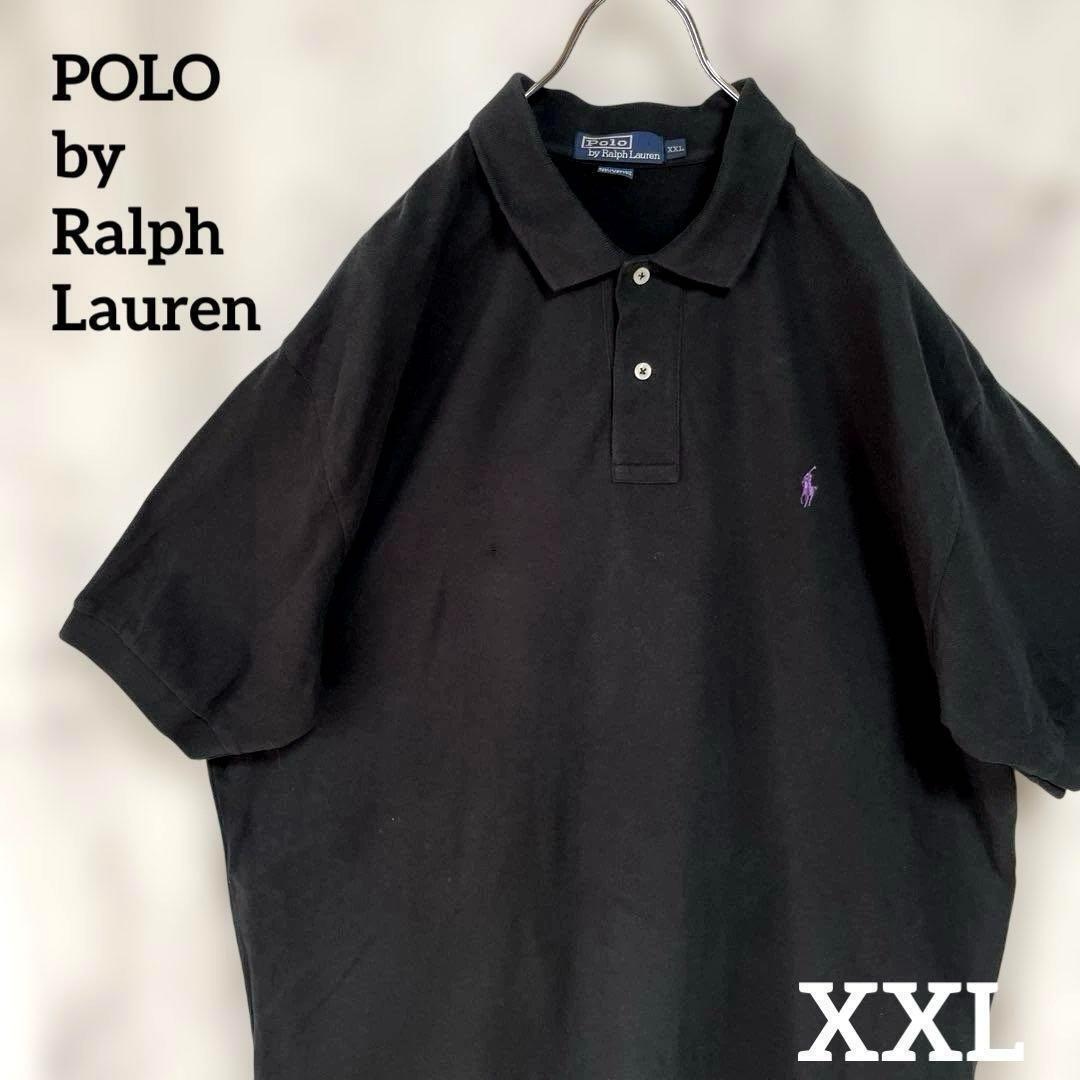- POLO ポロラルフローレン POLO by RALPH LAUREN 半袖ポロシャツ ビックXXLサイズ ブラック 黒 コットン 紫刺繍 大きい