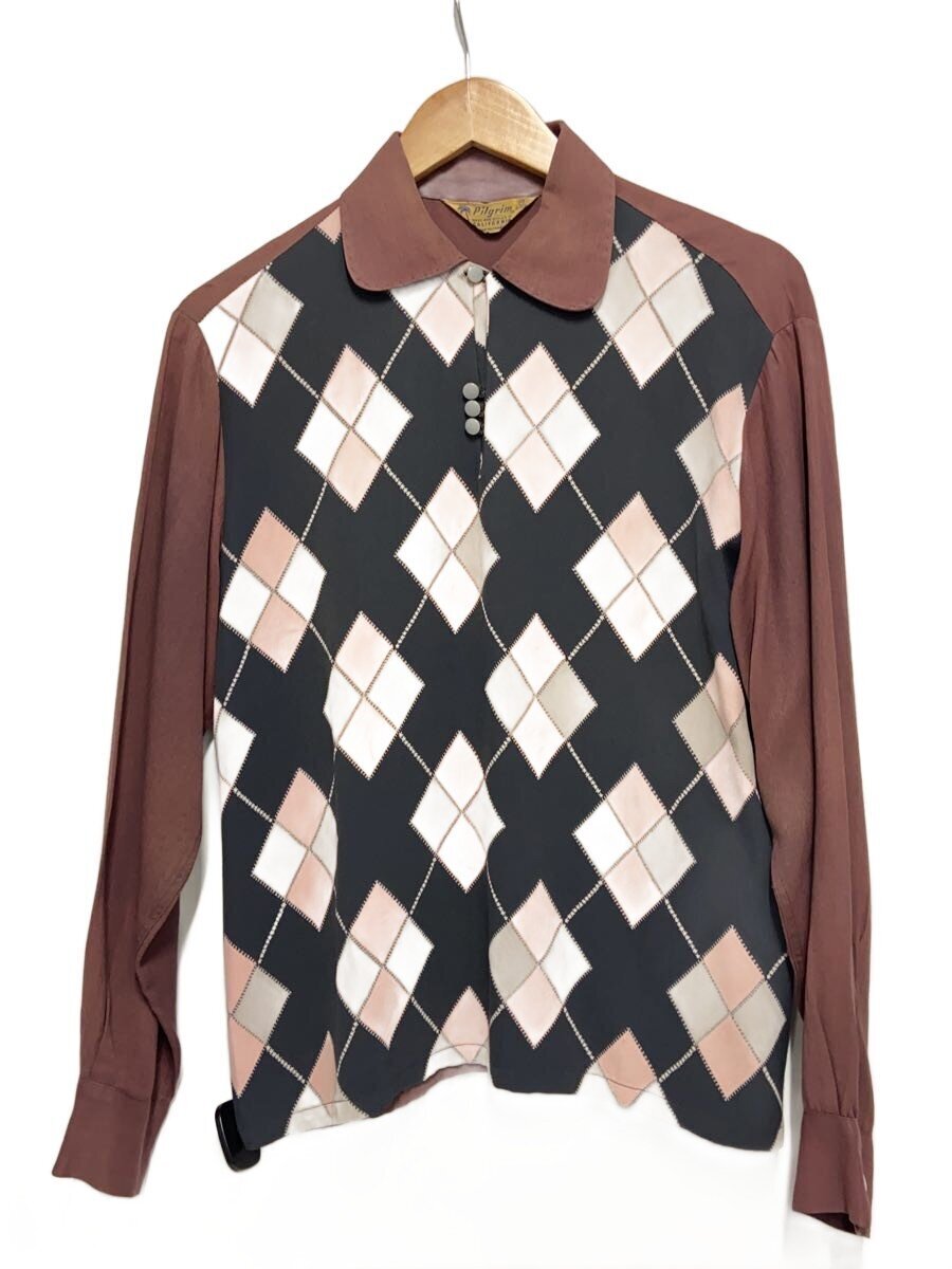 - PILGRIM◆50s/アーガイル/長袖シャツ/M/レーヨン/BRW/総柄