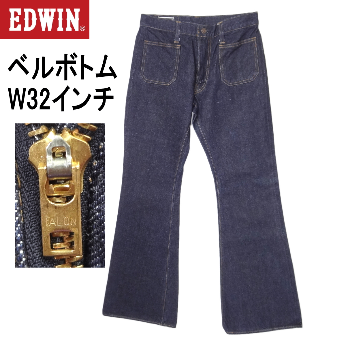 > エドウィン EDWIN ジーンズ フレアー ベルボトム ラッパ ブーツカット タロン社製ジッパー W32インチ インディゴブルーデニム