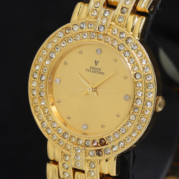 - シェーンバレンチノ 1247G QZ ゴールド文字盤 石付 ダイヤベゼル メンズ/レディース腕時計 KRH 2000000 NSK