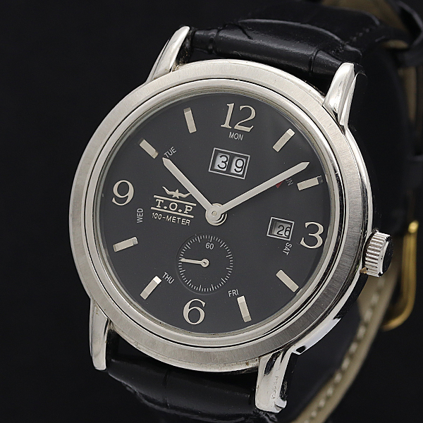 - 稼働 美品 ティーオーピー TO-AT-065 QZ デイデイト ブラック文字盤 メンズ腕時計 2000000 NSK INK