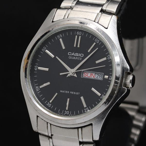 > 稼働 カシオ 1333 MTP-1239 デイデイト ラウンド QZ ブラック文字盤 メンズ腕時計 TKD 2000000 NSK