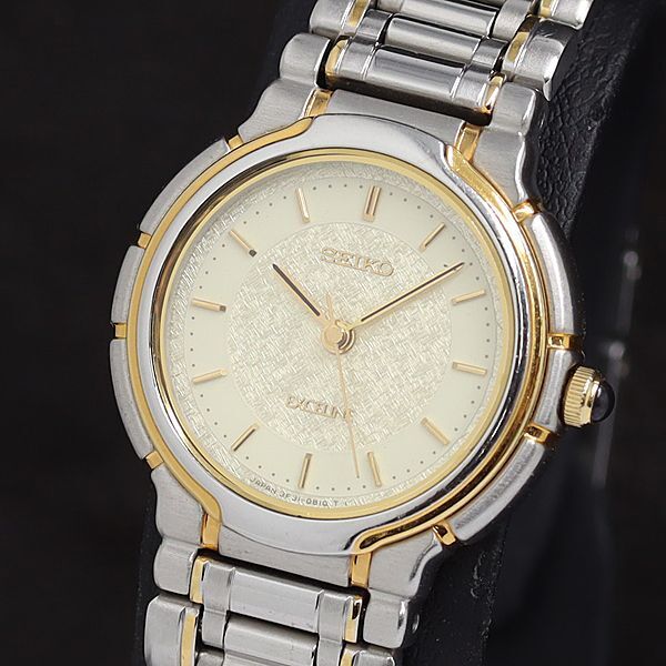 > 稼動 良品 セイコー QZ 3F31-0B20 イエロー系文字盤 ラウンド シルバー×ゴールド レディース腕時計 2000000 NSK OMI