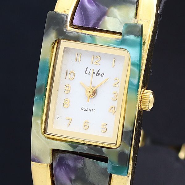 - 稼動 良品 リエベ QZ バングルウォッチ スクエア 白文字盤 レディース腕時計 MTM
