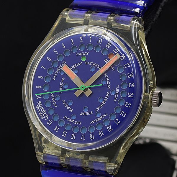 - 保/箱付 稼働 スウォッチ デイデイト QZ ブルー文字盤 6131 メンズ/レディース腕時計 KMR 2000000 NSK