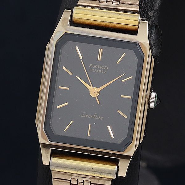 - 稼働 良品 QZ セイコー エクセリーヌ 1221-5020 スクエア 黒文字盤 レディース腕時計 OKZ 2550000