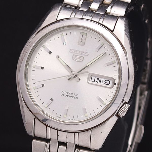 - セイコー AT/自動巻 7S26-01V0 セイコーファイブ 裏スケ 21石 デイデイト シルバー文字盤 メンズ腕時計 YSD