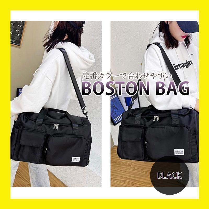 - ボストンバッグ 黒 ブラック 3way 旅行 合宿 修学旅行 防災 修学旅行 スポーツ 合宿