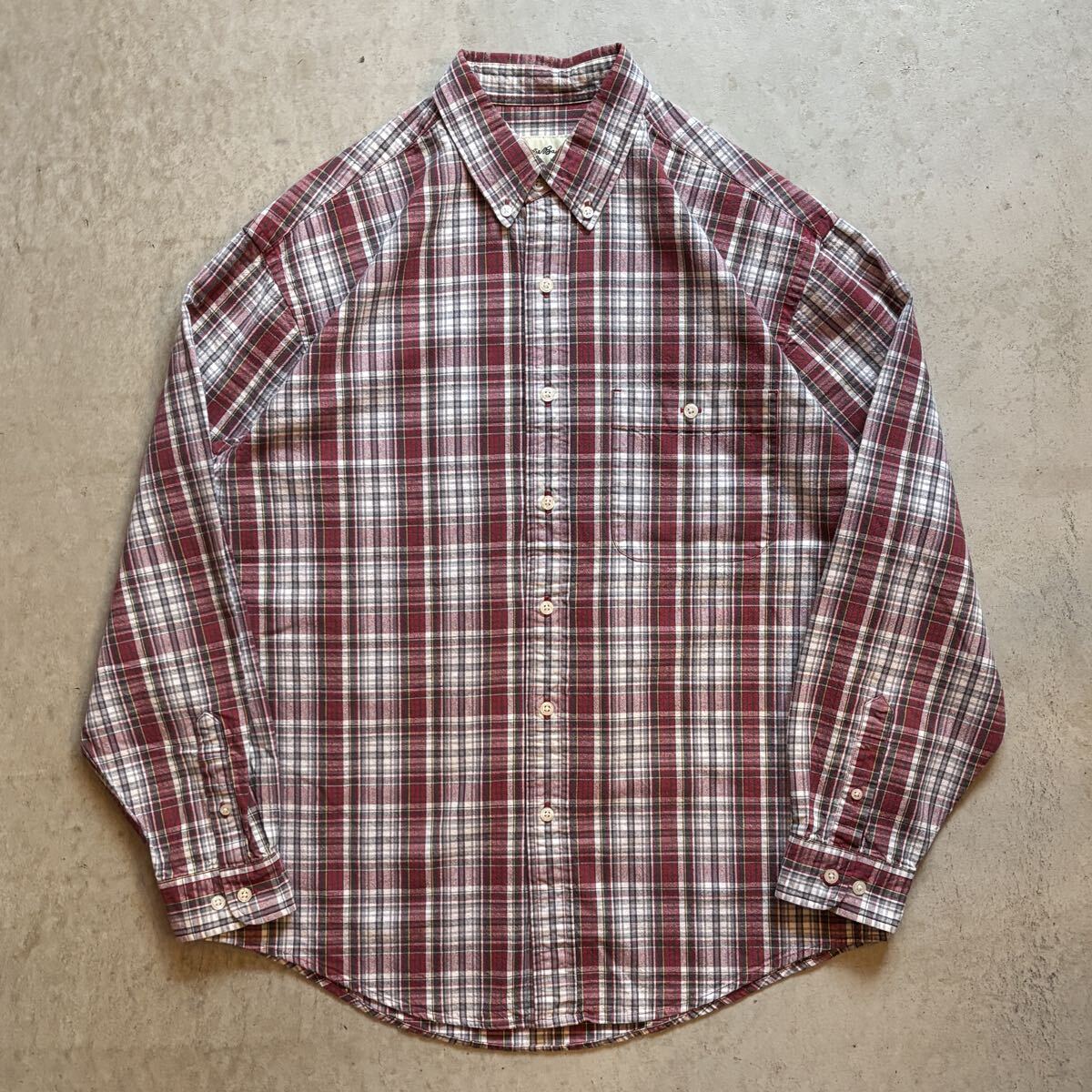 > 【00s】Eddie Bauer エディーバウアー ボタンダウン 長袖シャツ 赤/RED メンズ M チェック コットン アウトドア VINTAGE 古着 USED 正規品