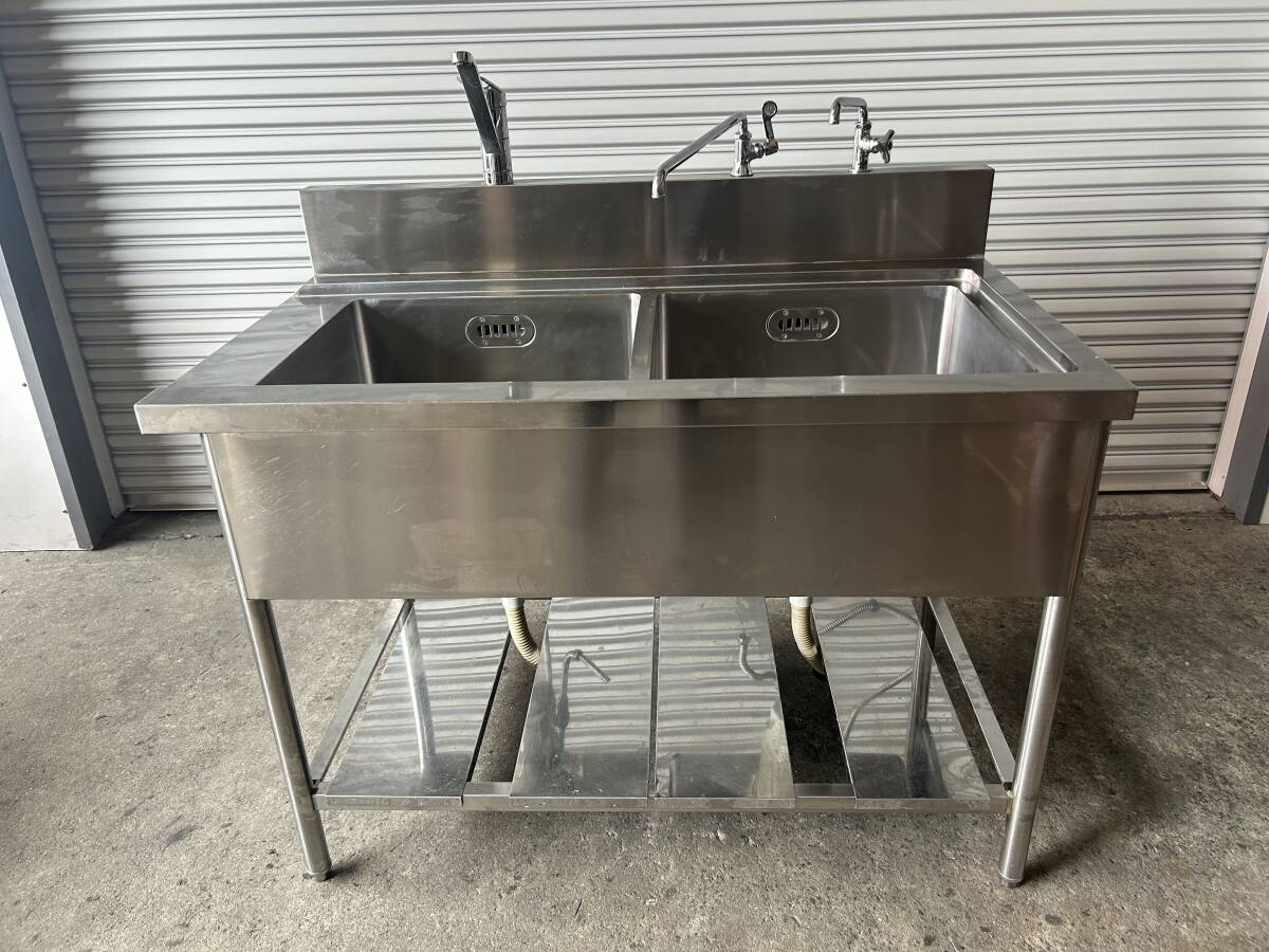 - 業務用 ソイルドテーブル(2槽) 食洗機用シンク 混合栓 蛇口付き W1200×D700×H830 厨房 厨房機器 高さ調節可能 店舗用品