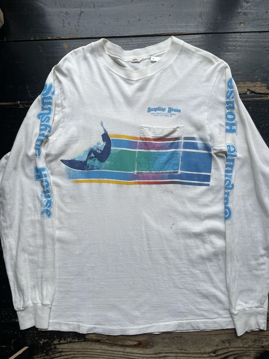 - 1980s 80s 80年代 サーフ サーフィン ヴィンテージ 古着 ロンT サーファー レトロ アメカジ ボロ 雰囲気 シミ 汚れ