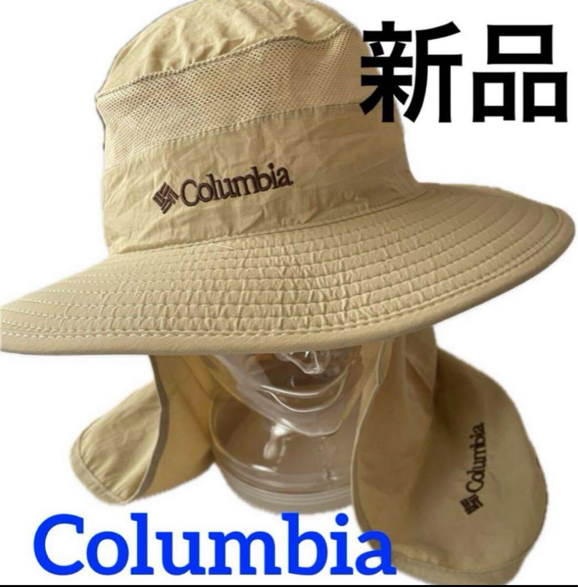 - 新品コロンビア帽子Columbiaアウトドアハット日除&フェイスネット付3点セット 熱中症予防 日焼け対策 ベージュ