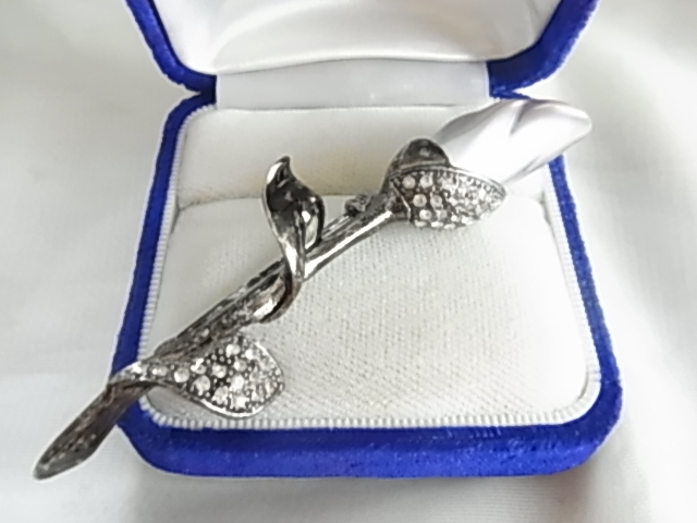 > ビンテージ/ヴィンテージ グレーパールトーンのストーン調 素材不明 ラインストーン輝くビジューのお花デザイン 存在感 ブローチ★