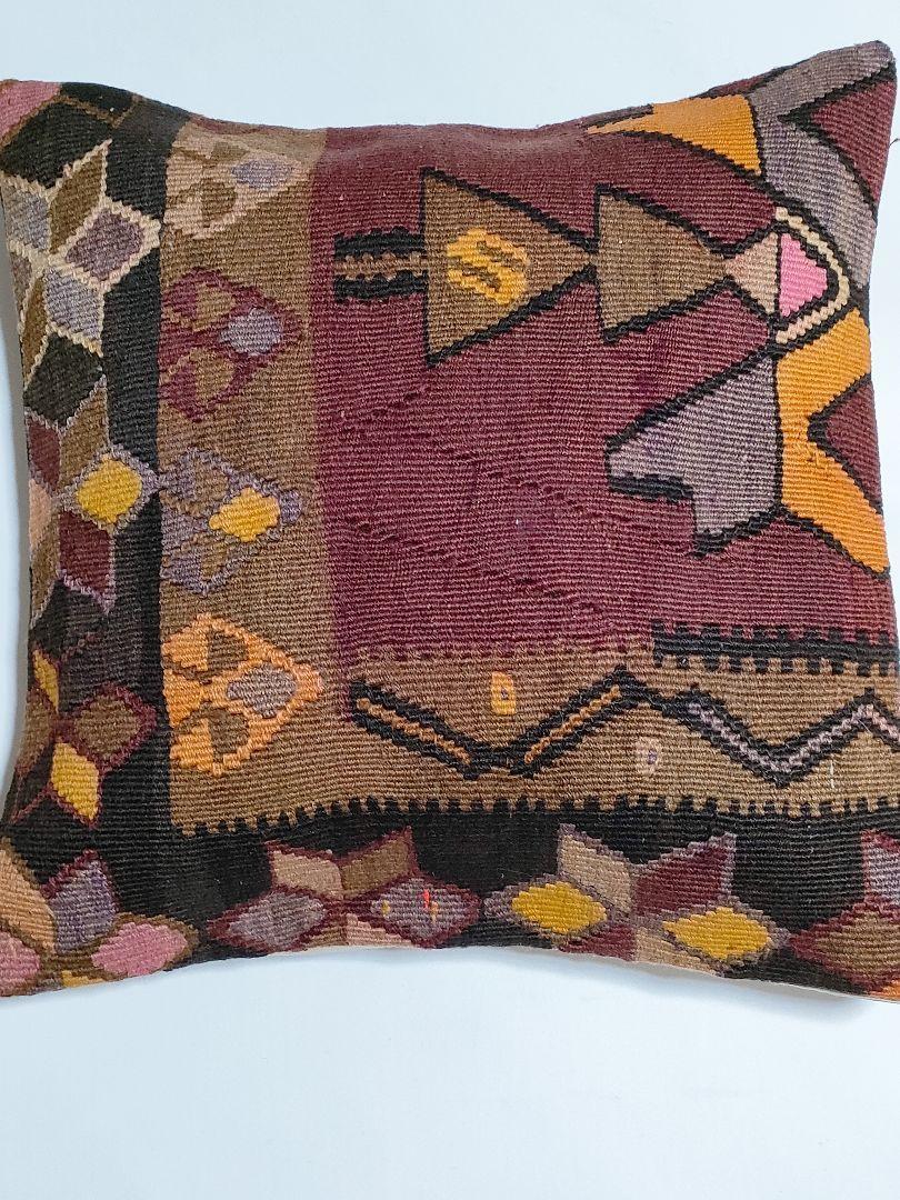 - L6-10 オールドキリム クッションカバー 50cmサイズ ブラウン トルコ